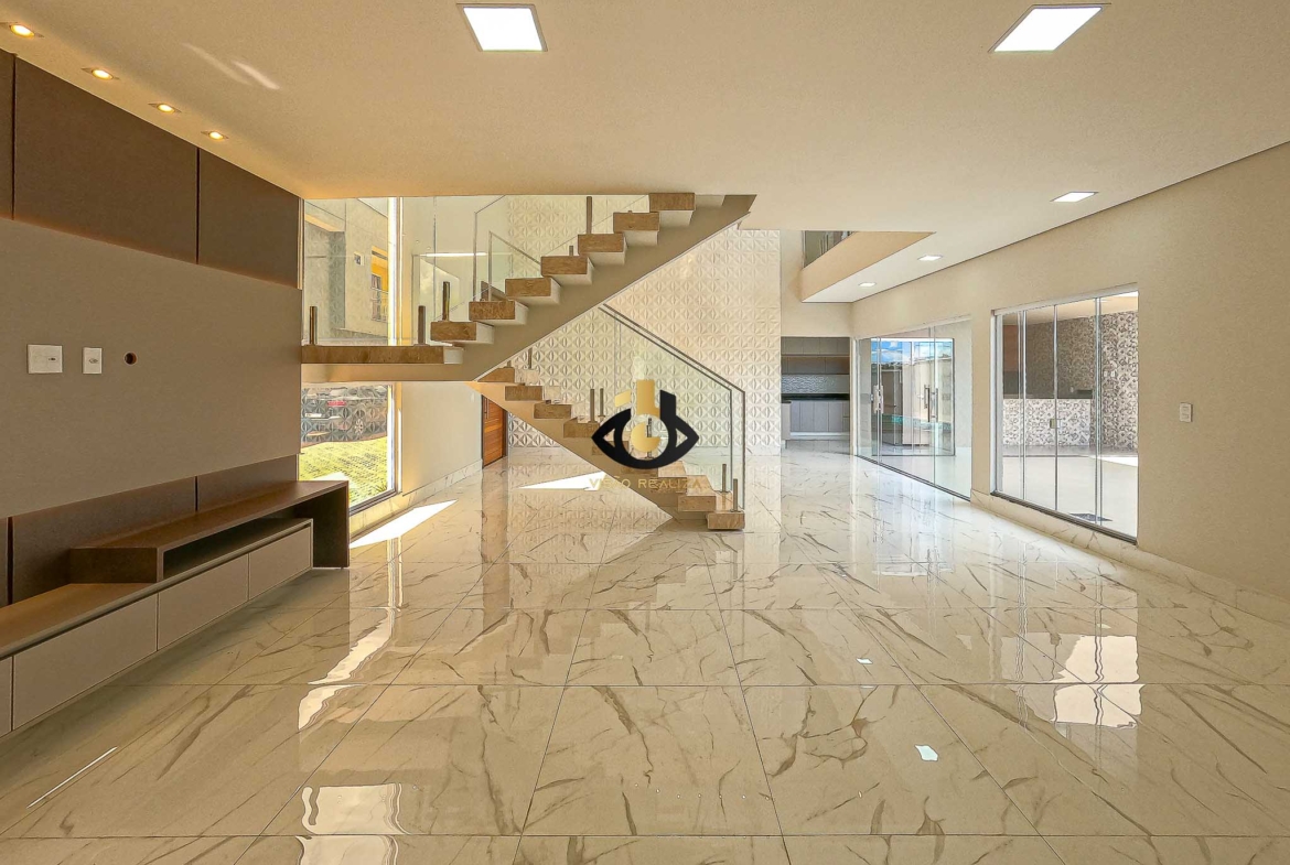 Arquitetura contemporânea encontra funcionalidade em cada ambiente desta residência de 350m² em Arniqueiras. Projeto inteligente privilegia integração de espaços, iluminação natural e áreas de convivência, ideal para famílias que buscam modernidade sem abrir mão do conforto.
